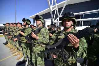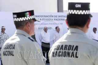 PÉNJAMO, GUANAJUATO, 16FEBRERO2020.- El Presidente de los Estados Unidos Mexicanos, Andrés Manuel López Obrador, encabezó la “Inauguración de Instalaciones de la Guardia Nacional” en Pénjamo, Guanajuato. Lo acompañan el General Luis Rodríguez Bucio comandante de la Guardia Nacional; General Luis Cresencio Sandoval, Secretario de la Defensa Nacional; Diego Sinhue Rodríguez Vallejo, gobernador de Guanajuato; Alfonso Durazo, Secretario de Seguridad y Protección Ciudadana y el Almirante José Rafael Ojeda Durán, Secretario de Marina. FOTO: PRESIDENCIA/CUARTOSCURO.COM