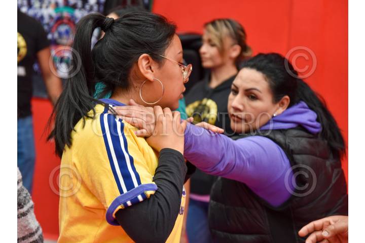 De forma gratuita se inició un curso de protección para mujeres llamado “Técnicas de identificación, reducción y control de la agresión y violencia” mujeres de diversas edades tomaron un curso se ofrece en Bulldog Kickboxing Academy, impartido por Samuel Navarro “El Bulldog” y otros instructores que buscan que las mujeres tengan las herramientas para poder prevenir alguna agresión, el curso se continuará dando todos los domingos en un horario de 8 a 10 de la mañana. FOTO: CRISANTA ESPINOSA AGUILAR /CUARTOSCURO.COM