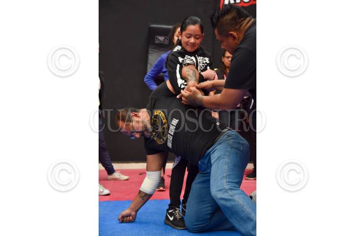 De forma gratuita se inició un curso de protección para mujeres llamado “Técnicas de identificación, reducción y control de la agresión y violencia” mujeres de diversas edades tomaron un curso se ofrece en Bulldog Kickboxing Academy, impartido por Samuel Navarro “El Bulldog” y otros instructores que buscan que las mujeres tengan las herramientas para poder prevenir alguna agresión, el curso se continuará dando todos los domingos en un horario de 8 a 10 de la mañana. FOTO: CRISANTA ESPINOSA AGUILAR /CUARTOSCURO.COM
