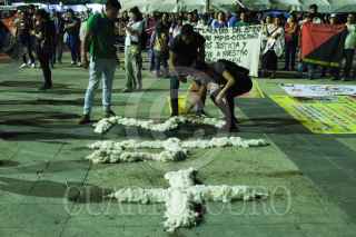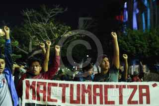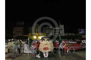 TUXTLA, GUTIÉRREZ, CHIAPAS, 16FEBRERO2020.- Estudiantes de la Escuela Normal Rural Mactumactza realizaron un acto político afuera del palacio de Gobierno del estado finalizándolo con la quema de la cabeza de Peña Nieto y +43, mientras gritaban consignas de protesta. FOTO: ISABEL MATEOS/CUARTOSCURO.COM