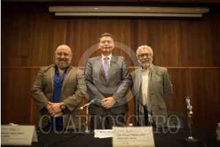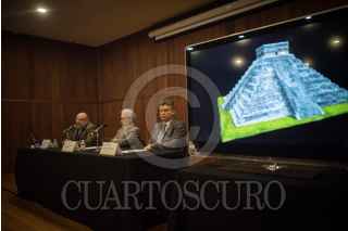 CIUDAD DE MÉXICO, 18FEBRERO2020.- El arqueólogo Guillermo de Anda, Director del Proyecto Gran Acuífero Maya, en compaía del DR. Pedro Francisco Sánchez Nava, Coordinador Nacional de Arqueología del INAH y el Embajador de Suiza en México, Eric Mayoraz, durante una conferencia de prensa en el museo Nacional de Antropología e Historia, en la cual hablaron sobre el aporte económico del Gobierno de Suiza al Proyecto Gran Acuífero Maya. FOTO: PEDRO ANZA/CUARTOSCURO.COM