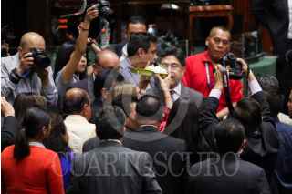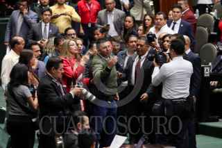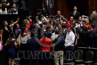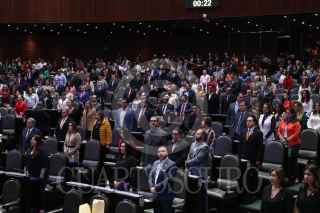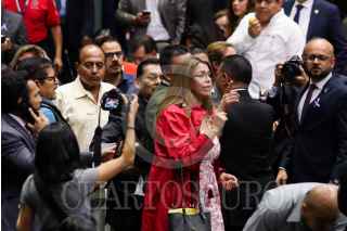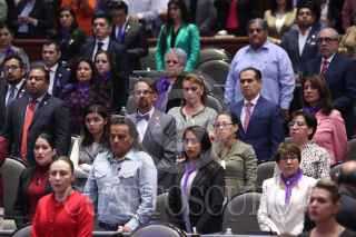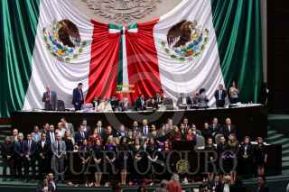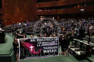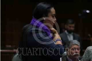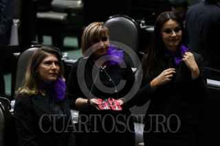 CIUDAD DE MÉXICO, 18FEBRERO2020.- Legisladoras y legisladores portaron un pañuelo morado como muestra del rechazo hacia la violencia contra las mujeres y niñas. Esto en fechas de los feminicidios de Ingrid Escamilla y la niña Fátima. A su vez, diputadas de la bancada panista tomaron la tribuna y colocaron pares de zapatos rojos, símbolo de la lucha contra los feminicidios. FOTO: GALO CAÑAS /CUARTOSCURO.COM