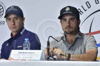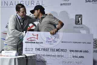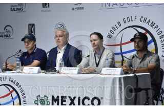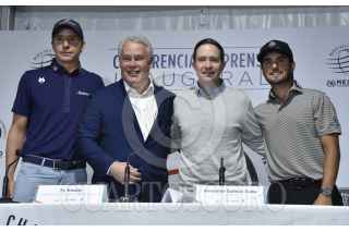 CIUDAD DE MÉXICO, 19FEBRERO2020.- Los golfistas mexicanos: Abraham Ancer y Carlos Ortiz, junto a Benjamín Salinas y Ty Votaw, durante conferencia de prensa previo al inicio del World Golf Championships México 2020, que comenzará el próximo 20 de febrero en el Club de Golf Chapultepec. FOTO: MARIO JASSO /CUARTOSCURO.COM