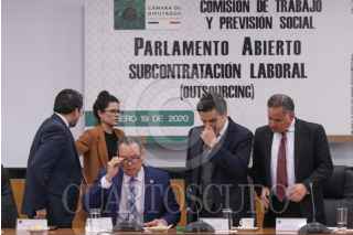CIUDAD DE MÉXICO, 19FEBRERO2020.- Francisco Cervantes, presidente de la CONCAMIN; Carlos Martínez, director del INFONAVIT; Luisa María Alcalde, secretaria de Trabajo ; el diputado Manuel de Jesús; Zoe Robledo, director del IMSS, y Santiago Nieto, titular de Inteligencia Financiera, Secretaria de Hacienda y Crédito Público, encabezaron el Parlamento abierto en relación al tema del Outsourcing, realizado en el salón del Protocolo en la Cámara de Diputados. FOTO: GRACIELA LÓPEZ /CUARTOSCURO.COM