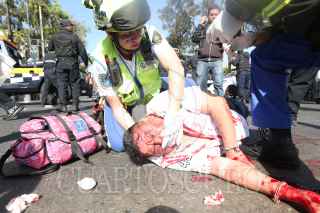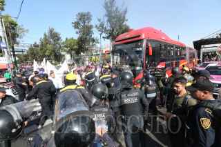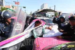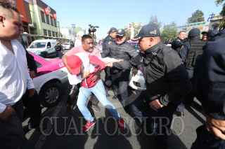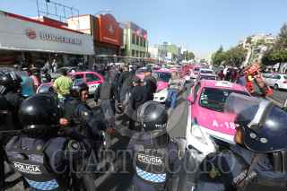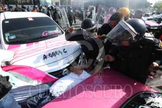 CIUDAD DE MÉXICO, 19FEBRERO2020.- Taxistas que se oponen al servicio a través de aplicaciones digitales se manifestaron en el cruce de Reforma y Eje 1 Norte, para exigirle al gobierno capitalino que regule este servicio. Los chóferes fueron retirados por policías capitalinos lo que suscitó un enfrentamiento con saldo de varios taxistas heridos, quienes fueron atendidos por elementos del ERUM. FOTO: CUARTOSCURO.COM