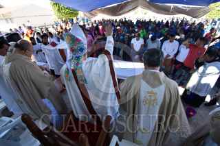 ALCOZACÁN, ESTADO DE MÉXICO, 19FEBRERO2020. El obispo de la Diócesis Chilpancingo-Chilapa, Salvador Rangel Mendoza tachó de apresuradas e irresponsables las declaraciones hechas por el titular de la Fiscalía General del Estado (FGE), Jorge Zuriel de los Santos Barrila, acerca de los hechos ocurridos en Chilapa y donde perdieran la vida 10 indígenas de Alcozacán, indicando que aquí "hay gato encerrado". Declaró que ya ha diálogo con una parte del grupo delictivo de "Los Ardillos" quienes le aseguraron que ellos no tuvieron nada que ver en ese delito, por lo que se tiene que investigar a fondo esta situación y buscará el acercamiento con el otro grupo delictivo que hay en la zona y escuchar su versión. Rangel Mendoza, acudió a la comunidad indígena de Alcozacán a ofrecer una misa, donde hizo un llamado a las autoridades de los 3 niveles de gobierno y de la misma comunidad, para "buscar la pacificación de este conflicto y no atizar más el problema". FOTO: DASSAEV TÉLLEZ ADAME/CUARTOSCURO.COM