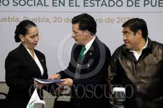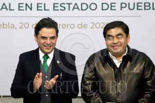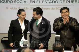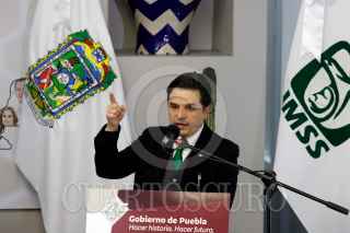 PUEBLA, PUEBLA, 20FEBRERO2020.- Zoe Robledo, delegado federal del IMSS y el gobernador Miguel Barbosa, encabezaron la presentación de María Aurora Treviño, como nueva titular de la oficina de representación del IMSS. FOTO: MIREYA NOVO/CUARTOSCURO.COM