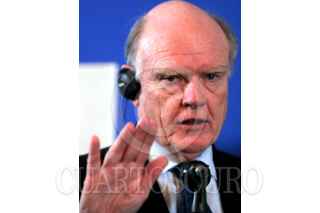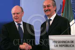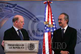 MEXICO, D.F. 15DICIEMBRE2005.- John Snow, secretario del Tesoro de Estados Unidos y Francisco Gil Díaz, secretario de Hacienda y Crredito Público durante una conferencia de prensa que ofrecieron a los medios de comunicación. FOTO: Nelly Salas/CUARTOSCURO.COM