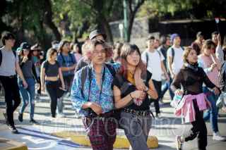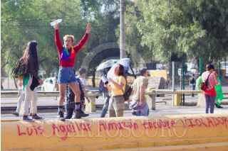 CIUDAD DE MÉXICO, 20FEBRERO2020.- Alumnas y alumnos provenientes del Colegio de Ciencias y Humanidades, plantel Oriente, marcharon por las facultades de Ciudad Universitaria exigiendo la destitución del actual Director, Víctor Efraín Peralta Terrazas. Los y las estudiantes afirman que no ha tomado las medidas correctas en el plantel ya que han fallecido tres alumnas por violencia de género y un alumno dentro de las instalaciones en menos de 6 meses. Afirman que el director del plantel también ha censurado algunas prácticas artísticas dentro del plantel. FOTO: RODRIGO RUBIO/CUARTOSCURO.COM