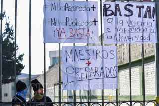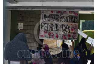 Estudiantes de la Facultad de Ciencias de la Conducta de la UAEM iniciaron un paro de actividades protestando en contra de acoso y violencia de género e inseguridad; exigen hablan con las autoridades universitarias. FOTO: CRISANTA ESPINOSA AGUILAR /CUARTOSCURO.COM