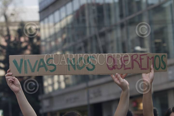 CIUDAD DE MÉXICO, 21FEBRERO2020.- Mujeres de Colectivas feministas cerraron los principales cruces de Avenida Juárez y la Avenida Eje Central ubicadas en el Centro Histórico. Con pancartas y gritos exigían que cesen los feminicidios y la justicia para la niña Fátima, asesinada la semana pasada. FOTO: ANDREA MURCIA/CUARTOSCURO.COM