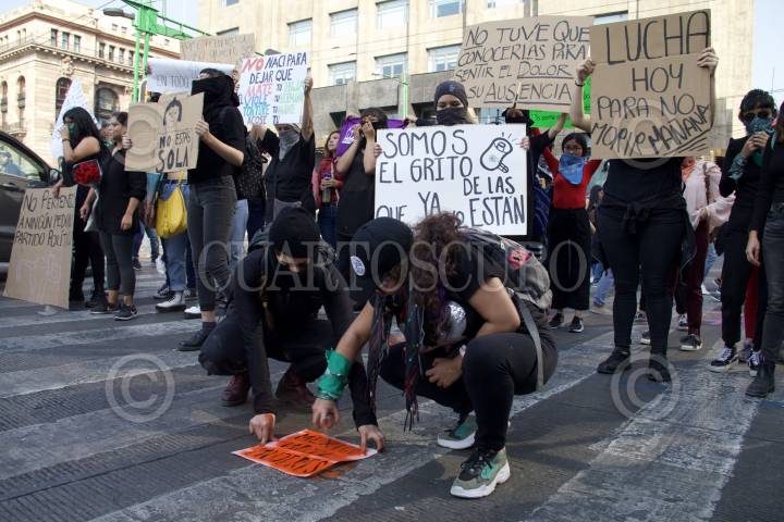 CIUDAD DE MÉXICO, 21FEBRERO2020.- Mujeres de Colectivas feministas cerraron los principales cruces de Avenida Juárez y la Avenida Eje Central ubicadas en el Centro Histórico. Con pancartas y gritos exigían que cesen los feminicidios y la justicia para la niña Fátima, asesinada la semana pasada. FOTO: ANDREA MURCIA/CUARTOSCURO.COM