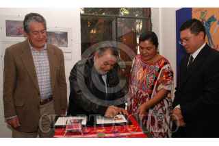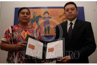 MÉXICO, D.F. 16DICIEMBRE2005 Griselda Galicia García Directora de la Dirección Genral de Culturas Populares y Carlos Caballero Luega, Subdirector de Mercadotecnia del Servicio Postal Mexicano durante el acto de cancelación de la estampilla Valoremos nuestra cultura popular e indígena que podrá ser adquirida en las oficinas de Sepomex. El costo es de seis pesos con cincuenta centavosy estarán en circulación 300 mil estampillas. FOTO:Miriam Sánchez/CUARTOSCURO.COM