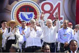CIUDAD DE MÉXICO, 23FEBRERO2020.- Andrés Manuel López Obrador, Presidente de México, encabezó el Congreso Nacional Extraordinario de la Confederación de Trabajadores de México (CTM) en el Monumento a la Revolución. El mandatario fue acompañado por Carlos Aceves del Olmo, Secretario General de la CTM; Olga Sánchez Cordero, Secretaria de Gobernación; Luisa María Alcalde Luján, Secretaria del Trabajo y Previsión Social; María Luisa Albores González, Secretaria de Bienestar; Miguel Ángel Riquelme Solís, Gobernador Constitucional del Estado de Coahuila; Claudia Sheinbaum Pardo, Jefa de Gobierno de la Ciudad de México. FOTO: PRESIDENCIA/CUARTOSCURO.COM