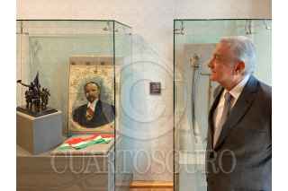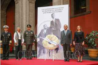 CIUDAD DE MÉXICO, 23FEBRERO2020.- Andrés Manuel López Obrador, Presidente de México, y Beatriz Gutiérrez Müller, presidenta honoraria de la Coordinación de la Memoria Histórico y Cultural de México, durante la ceremonia por el 107 aniversario luctuoso de Francisco I. Madero y de José María Pino Suárez, en el patio Mariano de Palacio Nacional. Lo acompañaron José Rafael Ojeda Durán, secretario de Marina; Olga Sánchez Cordero, secretaria de Gobernación, y Luis Cresencio Sandoval González, secretario de la Defensa. FOTO: PRESIDENCIA/CUARTOSCURO.COM