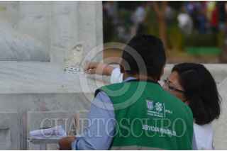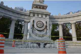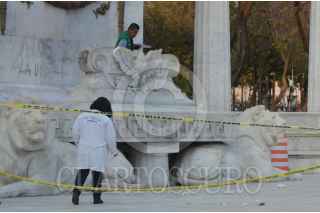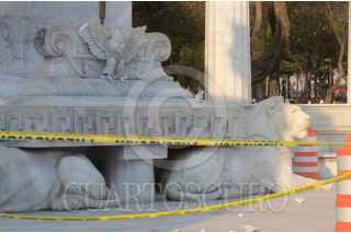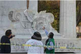 CIUDAD DE MÉXICO, 23FEBRERO2020.- Policías capitalinos reportaron que durante la madrugada desconocidos le rompieron la cabeza y una de las alas a la águila de mármol del Hemiciclo a Juárez. A las cinco de la tarde acudieron peritos de la fiscalía capitalina para iniciar las investigaciones de esta agresión. FOTO: ARMANDO MONROY/CUARTOSCURO.COM