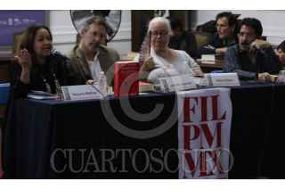 CIUDAD DE MÉXICO, 23FEBRERO2020.- Se llevó a cabo la presentación del libro "El cambio democrático en México. Retos y posibilidades de la cuarta transformación", encabezado por San Juana Martínez, directora de la Agencia Notimex; el investigador Jhon M. Ackermann; Malena Mijares, directora General de Divulgación de las Humanidades, y el investigador Pedro Salmerón. El acto se realizó en la Edición 41 de la Feria Internacional del Libro (FIL), en Palacio de Minería. FOTO: GRACIELA LÓPEZ /CUARTOSCURO.COM