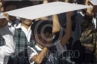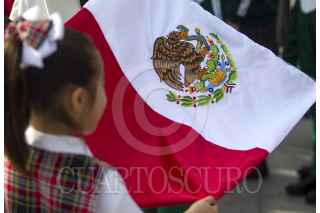 GUADALUPE, NUEVO LEÓN, 24FEBRERO2020.- Niños y jóvenes de diversas escuelas acudieron a la Plaza Principal del municipio de Guadalupe para conmemorar el día de la bandera. FOTO: GABRIELA PÉREZ MONTIEL /CUARTOSCURO.COM
