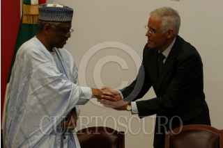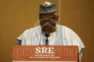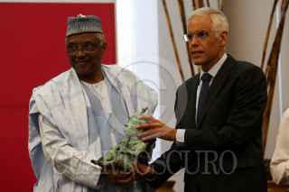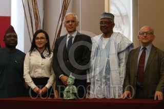 CIUDAD DE MÉXICO, 25FEBRERO2020.- Julián Ventura, subsecretario de Relaciones Exteriores, y Aminu Iyawa embajador de Nigeria en México, encabezaron la ceremonia de entrega de Bienes Culturales entre ambas naciones. La figura perteneciente a la cultura IFE y fue incautado en un paquete de envío en la aduana mexicana. FOTO: GALO CAÑAS /CUARTOSCURO.COM