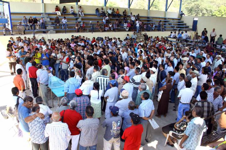 TIERRA COLORADA, GUERRERO16DICIEMBRE2005.- Se realizó la asamblea en donde se aprobó con 341 que la CFE lleve a cabo el proyecto hidroeléctrico "La parota" y sus tierras sean expropiadas e indemnizadas en un día en el que resultaron heridos trece persona por los enfrentamientos con quienes se oponen al proyecto. FOTO: Javier Verdin/CUARTOSCURO.COM