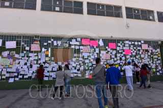 Estudiantes de la Escuela Preparatoria Núm. 1 “Adolfo López Mateos” denunciaron ser víctimas de acoso sexual y hostigamiento por parte de profesores y compañeros; iniciaron un movimiento en las instalaciones de esta escuela colocando en los muros diversas denuncias por parte del alumnado y apoyándose entre ellos. FOTO: CRISANTA ESPINOSA AGUILAR /CUARTOSCURO.COM