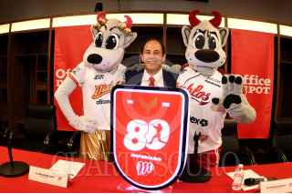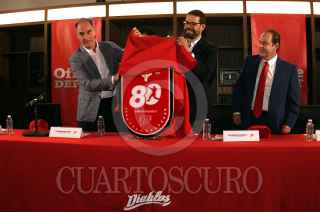 CIUDAD DE MÉXICO, 25FEBRERO2020.- Este martes en las instalaciones del Estadio Alfredo Harp Helú, los Diablos Rojos hicieron la presentación del logotipo conmemorativo de los 80 años de la organización escarlata. El evento estuvo encabezado por el Dr. Othón Díaz Valenzuela y Miguel Ojeda presidente ejecutivo y presidente adjunto respectivamente por parte del México, y por los licenciados Jaime Alverde Losada y Marco Antonio Pérez López, director general y director de marketing del Office Depot, nuevo patrocinador de los Diablos Rojos. Este logo tiene un significado muy especial para todos los integrantes de la organización escarlata, ya que engloba 80 años de tradición, compromiso, entrega, dedicación y amor por esta franela, hablar los de los Diablos Rojos es hablar del beisbol mexicano, no se podría entender a la Liga Mexicana de Beisbol sin el México, sin duda la Pandilla Escarlata es un pilar en fundamental en la historia del beisbol mexicano. FOTO: CORTESÍA DIABLOS ROJOS/CUARTOSCURO.COM