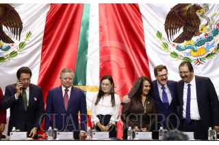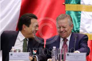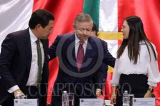 CIUDAD DE MÉXICO, 25FEBRERO2020.- Mario Delgado, coordinador de Morena; el ministro Arturo Zaldívar Lelo de la Rea; Laura Rojas, presidenta de la Mesa directiva en la Cámara de Diputados; la vicepresidenta Dolores Padierna, y los coordinadores de los diferentes partidos asistieron a la presentación del proyecto de Reformas con y para el poder Judicial de la Federación, la cual se realizó en el Salón Legisladores en la Cámara de Diputados. FOTO: GRACIELA LÓPEZ /CUARTOSCURO.COM