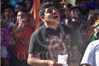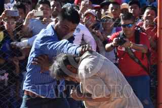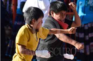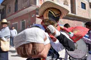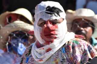 ZITLALA, GUERRERO, 25FEBRERO2020.- Como cada año, en martes de carnaval, los habitantes del municipio realizaron la tradicional "Pelea de Xochimilcas", donde hombres de casi todas las edades se enfrentan a golpes para recordar a sus ancestros. Dicha tradición recuerda a la lucha que los habitantes hombres indígenas de Zitlala tuvieron con los habitantes de la localidad de Xochimilco para correrlos e impedir que siguieran robando y violando; es por eso que todos o la mayoría de los hombres de Zitlala se visten como indígenas acatecas, recordando como fue la pelea de sus ancestros. En la actualidad la pelea de Xochimilcas es una pelea para hermanar a los barrios de Zitlala y acabar con los malos entendidos entre sus habitantes e incluso con un amigo, ya que todo encuentro empieza y termina con un saludo de mano. FOTO: DASSAEV TÉLLEZ /CUARTOSCURO.COM