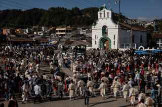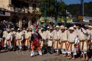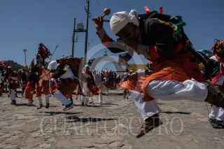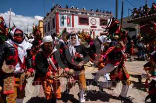 CHAMULA, CHIAPAS, 25FEBRERO2020.-Al cierre del Carnaval de San Juan Chamula acuden pobladores tzotziles de la región de los Altos de Chiapas, ya que es considerado el más grande de la región. Inicia con la preparación de los hombres encargados de controlar toros mediante cuerdas, se realiza el lavado de pies con pox; para protegerse de lesiones y se visten con indumentaria elaborada en la región. La llegada de los Maxes, anuncia el inicio de las actividades, ellos son encargados de abrir el camino de los participantes y amenizar la fiesta con música y baile. Ya reunidos, las autoridades tradicionales y los participantes de cada barrio; San Sebastián, San Pedro y San Juan, recorren la plaza principal y realizan ceremonias ancestrales con las mayores autoridades del pueblo. Por la tarde cada barrio es responsable de llevar y controlar en promedio diez toros para la celebración, donde cientos de personas se reúnen para esperar la vuelta de los toros por la plaza central. FOTO: ISABEL MATEOS /CUARTOSCURO.COM