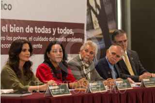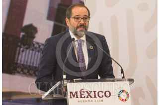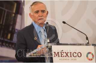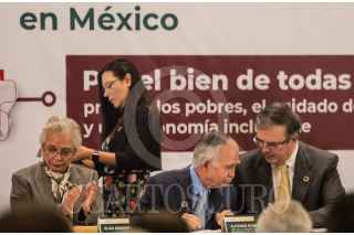 CIUDAD DE MÉXICO, 26FEBRERO2020.- Olga Sánchez Cordero, secretaria de Gobernación; Alfonso Romo Garza, jefe de la Oficina de la Presidencia de la República; Marcelo Ebrard Casaubón, secretario de Relaciones Exteriores; Laura Roas Hernández, presidenta de la mesa directiva en la Cámara de Diputados; Abel Hibert Sánchez, subjefe de innovación y análisis; Nancy de la Sierra Arámburo, representante de la mesa directiva del Senado de la República; María Luisa Albores, secretaria de Bienestar e Ignacio Peralta Sánchez, gobernador de Colima presidente de la Comisión Agenda 2020 de la CONAGO, durante el Lanzamiento de la Estrategia Nacional para la implementación de la Agenda 2030 en México. FOTO: INE/CUARTOSCURO.COM