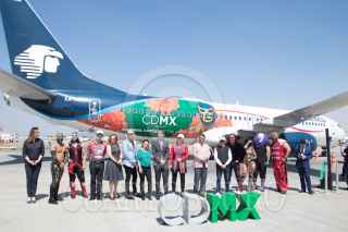 CIUDAD DE MÉXICO. 26FEBRERO2020.- Paola Félix Díaz, directora de Fondo Mixto de Promoción Turístico, encabezó la presentación de la "Aeronave CDMX", la cual tiene el propósito de impulsar el turismo mundial a través de la ilustración que tiene el avión. El acto se realizó en el Hangar de Aeroméxico Oriente, en el Aeropuerto Internacional de México. FOTO: GRACIELA LÓPEZ /CUARTOSCURO.COM