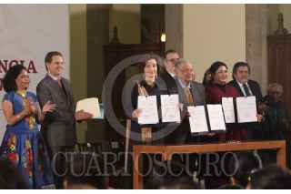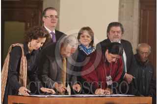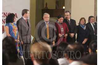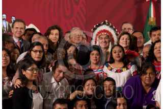 CIUDAD DE MÉXICO, 27FEBRERO2020.- Andrés Manuel López Obrador, presidente de México, encabezó la Presentación del evento de alto nivel Construyendo un Decenio de Acciones para las Lenguas Indígenas, lo acompañaron, Adelfo Regino Montes, director general del Instituto Nacional de los Pueblos Indígenas (INPI); Natalia Toledo Paz, subsecretaria de Diversidad Cultural, Secretaría de Cultura; Esteban Moctezuma Barragán, secretario de Educación Pública; Audrey Azoulay, directora general de la Organización de las Naciones Unidas para la Educación, la Ciencia y la Cultura (Unesco); Alejandra Frausto Guerrero, secretaria de Cultura; Marcelo Ebrard Casaubon, secretario de Relaciones Exteriores; Martha Delgado Peralta, subsecretaria para Asuntos Multilaterales y Derechos Humanos de la Secretaría de Relaciones Exteriores; Rogelio Jiménez Pons, director general del Fondo Nacional de Fomento al Turismo (Fonatur) y Cipriano Ramírez, tercer hablante de ixteco. FOTO: ANDREA MURCIA /CUARTOSCURO.COM