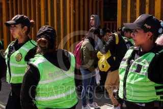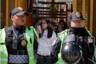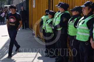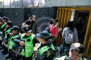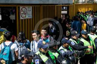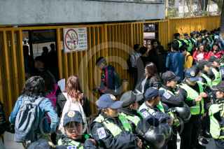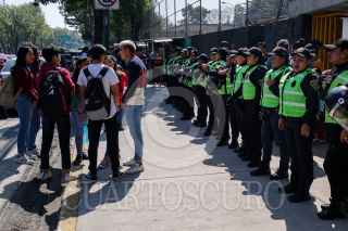CIUDAD DE MÉXICO, 27FEBRERO2020.- La preparatorio número 5 de la Universidad Nacional Autónoma de México (UNAM) retomó actividades, esta mañana, las cuales permanecían en paro desde el pasado 4 de febrero a causa de las denuncias de acoso y violencia de género por parte de autoridades. Estudiantes inconformes, cubiertos del rostro, trataron de impedirlo pero fueron frenados por los elementos de seguridad, así como padres de familia que se oponen a un nuevo paro de labores. FOTO: GALO CAÑAS /CUARTOSCURO.COM