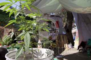 CIUDA DE MÉXICO, 27FEBRERO2020.- En las inmediaciones de la Cámara de Senadores esquina con Av. Reforma se ha sembrado el primer plantío de Marihuana no clandestino. Colectivos que apoyan la Ley general del cannabis están ahí desde el 2 de febrero. FOTO: ANDREA MURCIA/CUARTOSCURO.COM