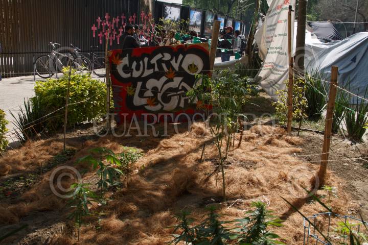 CIUDA DE MÉXICO, 27FEBRERO2020.- En las inmediaciones de la Cámara de Senadores esquina con Av. Reforma se ha sembrado el primer plantío de Marihuana no clandestino. Colectivos que apoyan la Ley general del cannabis están ahí desde el 2 de febrero. FOTO: ANDREA MURCIA/CUARTOSCURO.COM