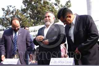 MÈXICO, D.F. 18DICIEMBRE2005.- Emilio Alvarez Icaza, presidente de la comisión de Derechos Humanos del D.F., Alejandro Encinas, Jefe de gobierno del D.F. y Joel Ortega, Secretario de Seguridad Pública del D.F. momentos antes del desfile conmemorativo del Día del Policia. FOTO:Miriam Sánchez/CUARTOSCURO.COM