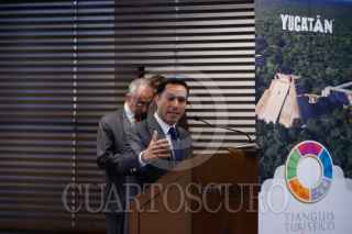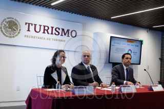 CIUDAD DE MÉXICO, 27FEBRERO2020.- Michelle Fridman Hirsch, secretaria de Fomento Turístico de Yucatán; Miguel Torruco Marqués, secretario de Turismo federal; y Mauricio Vila Dosal, gobernador de Yucatán, ofrecieron una conferencia de prensa de los avances de organización del Tianguis Turístico 2020, que se realizará en Mérida, Yucatán. FOTO: MOISÉS PABLO/CUARTOSCURO.COM
