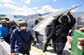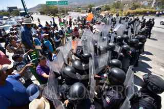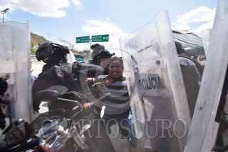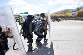 CHILPANCINGO, GUERRERO, 27FEBRERO2020.- Sin protocolo, policías del estado con equipo antimotín desalojaron a habitantes de cinco municipios, Quechultenango, Chilapa, José Joaquín de Herrera, Acatepec y Atlixtac, que bloqueaban la autopista del Sol en Chilpancingo, para exigir la mejora de las carreteras de diversas localidades; principalmente el del tramo carretero Juxtlahuaca-El Epazote, señalando que los trabajos de esta carretera se encuentran varados desde hace un año. FOTO: DASSAEV TÉLLEZ ADAME/CUARTOCURO.COM