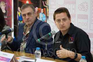 CIUDAD DE MÉXICO, 27FEBRERO2020.- Lorena de la Garza, Morris Gilbert y Néstor Núñez, durante la conferencia de prensa en donde revelaron los detalles de la campaña “Tu Pasaje al Teatro”, la cual busca fomentar la asistencia de las personas al teatro, acercando al publico con camionetas que recorrerán promoviendo obras de teatro por las calles de la alcaldía Cuauhtémoc, esto en la Sala Cabildos de dicha alcaldía. FOTO: ROGELIO MORALES /CUARTOSCURO.COM