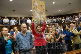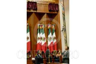CULIACÁN, SINALOA, 27FEBRERO2020.- Con la representación de los poderes Ejecutivo y Judicial, el Congreso del estado develó en el Muro de Honor del Salón de Sesiones el nombre con letras doradas de Manuel Jesús Clouthier del Rincón “Maquío”. Ante familiares del homenajeado, la presidenta de la Junta de Coordinación Política del Congreso, Graciela Domínguez Nava, resaltó que por su legado político ‘Maquío’ Clouthier es patrimonio cultural de los mexicanos. Explicó que inscribir su nombre en el Muro de Honor significa rendir homenaje a un político sinaloense comprometido con la democracia y la justicia; a un hombre que, al reivindicar la democracia del gobierno y de la sociedad, sabía que era para avanzar hacia la justicia. FOTO: JUAN CARLOS CRUZ /CUARTOSCURO.COM