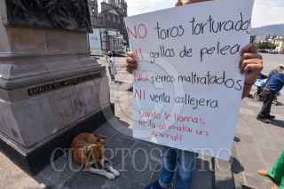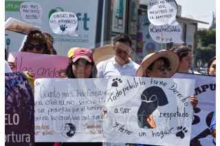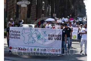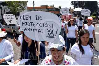 Protectoras de animales en el Estado de México marcharon en contra del maltrato animal y las corridas de toros, finalizaron la marcha en la Cámara de Diputados local en donde entregaron un pliego petitorio. FOTO: CRISANTA ESPINOSA AGUILAR /CUARTOSCURO.COM