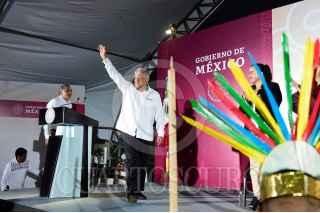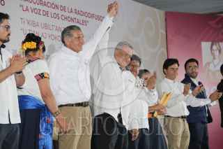 NACAJUCA, TABASCO, 28FEBRERO2020.- El presidente Andrés Manuel López Obrador y Adán Augusto López Hernández, gobernador de Tabasco, sostuvieron un diálogo con los pueblos chontal, náhuatl y zoque-ayapaneco de Tabasco. Como parte del este hecho, fue inaugurada la radiodifusora “La Voz de los Chontales” en Centro Coordinador de Pueblos Indígenas, Nacajuca, Tabasco, esto en compañía de Adelfo Regino Montes, Director General del Instituto Nacional de los Pueblos Indígenas; Román Meyer Falcón, Secretario de Desarrollo Agrario Territorial y Urbano y Jesús Ramírez Cuevas, Coordinador General de Comunicación Social y Vocero del Gobierno de México. FOTO: PRESIDENCIA /CUARTOSCURO.COM