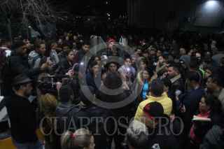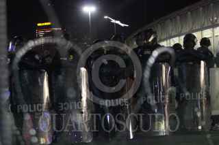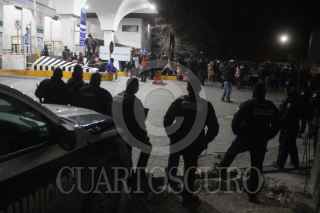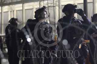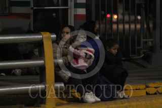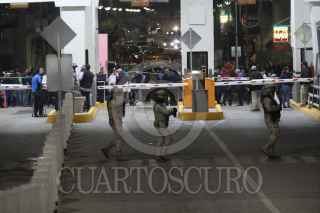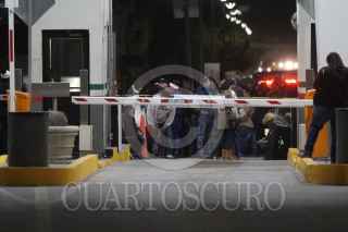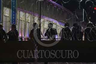 CIUDAD JUÁREZ, CHIHUAHUA, 29FEBRERO2020.- El puente Santa Fe fue cerrado esta noche con una barricada de agentes policíacos de Aduanas y Protección Fronteriza (CBP por sus siglas en inglés) en respuesta al intento de un grupo de cubanos que intentaron pasar en grupo hacía El Paso, Texas. Los emigrantes caribeños se dijeron desesperados por la tardanza de las autoridades estadounidenses para procesar las solicitudes de asilo político. El contingente integrado por aproximadamente 200 personas fue frenado por agentes de la policía federal, agentes de la CBP ahí apostados en forma permanente, y luego por líneas de alambre de púas y barras de concreto colocadas lo ancho del cruce. Como efecto del bloqueo, cientos de automóviles quedaron varados, los mismo que una multitud de peatones, imposibilitados para cruzar a la vecina ciudad. FOTO: NACHO RUIZ /CUARTOSCURO.COM