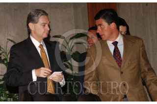 MÈXICO, D.F. 05ENERO2006.- Luis Ernesto Derbez, Secretario de Relaciones Exteriores y Gerònimo Gutierrez Fernàndez Subsecretario para Amèrica del Norte al termino de la conferencia de prensa en la Secretaria de Relaciones Exteriores. FOTO:Miriam Sanchez/CUARTOSCURO.COM