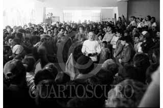LEÓN, NICARAGUA, 01MARZO2020.- Falleció el poeta nicaragüense Ernesto Cardenal, figura clave de la Teología de la Liberación, voz moral de la revolución sandinista y crítico del gobierno de Daniel Ortega. El poeta y sacerdote dejó de existir a los 95 años a causa de daños renales y cardíacos, informaron fuentes cercanas al literato. Su compromiso político hizo que apoyará la lucha armada contra la dictadura de Somoza, una dinastía que gobernó Nicaragua por más de 40 años, y más recientemente plantar cara al gobierno del presidente Daniel Ortega, cuyos excesos de poder y arbitrariedades denunciaba en cada viaje que hacía para presentar su poesía. La imagen es de julio de 1979, Ernesto Cardenal durante la instalación de la Junta de Reconstrucción Nacional antes del triunfo de la Revolución Sandinista. FOTO: ARCHIVO PEDRO VALTIERRA/CUARTOSCURO.COM