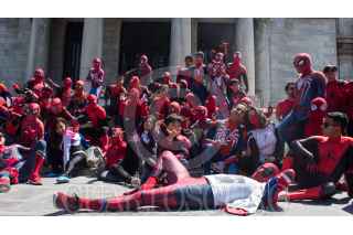 CIUDAD DE MÉXICO, 01MARZO2020.- Un grupo de fanáticos del Hombre Araña se reunen a un costado del Instituto Nacional de Bellas Artes. FOTO:MAGDALENA MONTIEL/CUARTOSCURO.COM