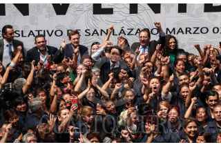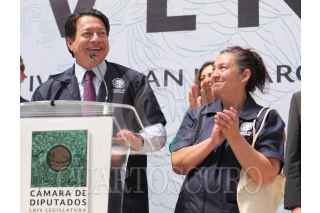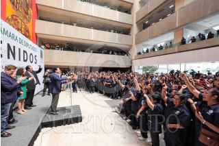 CIUDAD DE MÉXICO, 02MARZO2020.- Integrantes de la Junta de Coordinación Política de la Cámara de Diputados encabezaron el acto de bienvenida a los trabajadores de limpieza, como personal formal del Palacio Legislativo. Mario Delgado, presidente de la Jucopo se congratuló porque se terminan años de corrupción y contratación abusiva para los trabajadores de limpieza, quienes desde ahora son trabajadores con derechos. FOTO: CUARTOSCURO.COM