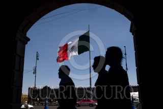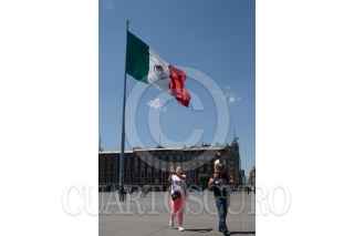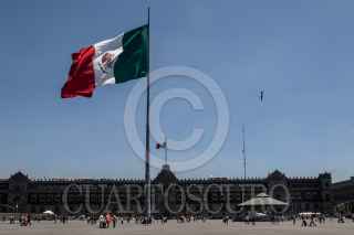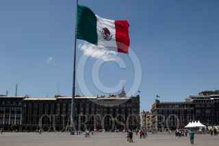CIUDAD DE MÉXICO, 03MARZO2020.- Fuertes vientos se sintieron en la capital lo que trajo un cielo despejado. Capitalinos que paseaban por en el primer cuadro disfrutaron del espectáculo de la bandera monumental ondeando en todo lo alto del zócalo. FOTO: MOISÉS PABLO/CUARTOSCURO.COM