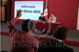 CIUDAD DE MÉXICO, 03MARZO2020.- Gustavo Reyes Terán, titular de la Comisión Coordinadora de Institutos Nacionales de Salud y Hospitales de Alta Especialidad y José Luis Alomía Zegarra, director general de Epidemiología, encabezaron la conferencia de prensa sobre el Coronavirus en la cual detallaron que se tienen 39 posibles casos a nivel nacional y que se espera la confirmación o desestimación de estos el día de mañana. FOTO: ROGELIO MORALES /CUARTOSCURO.COM