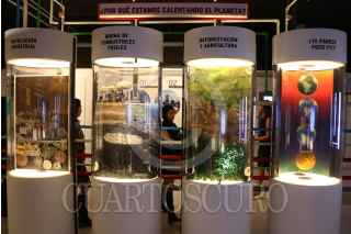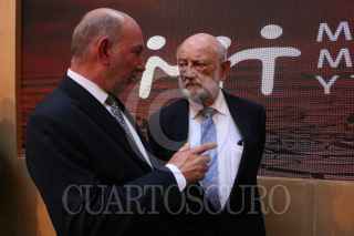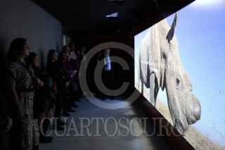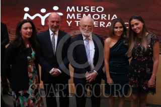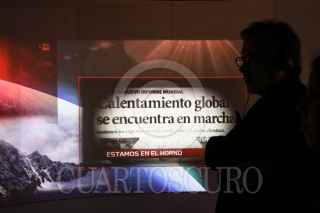 CIUDAD DE MÉXICO, 03MARZO2020.- Chistrian Viso, Gael García, Alfonzo de Alba, Sharon Zaga, directora del Museo De Memoria y Tolerancia y José Aristeo Sarukhán, ex rector de la UNAM, durante la inauguración de la exposición "Cambio Climático es Ahora", en el Museo de la Memoria y Tolerancia. FOTO: ROGELIO MORALES /CUARTOSCURO.COM